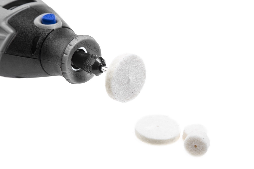- 4 полировальных круга (диаметр — 13 и 26 мм) для обработки металла и пластмассы. Используются для полировки тонкого слоя дерева, монет, листового металла.