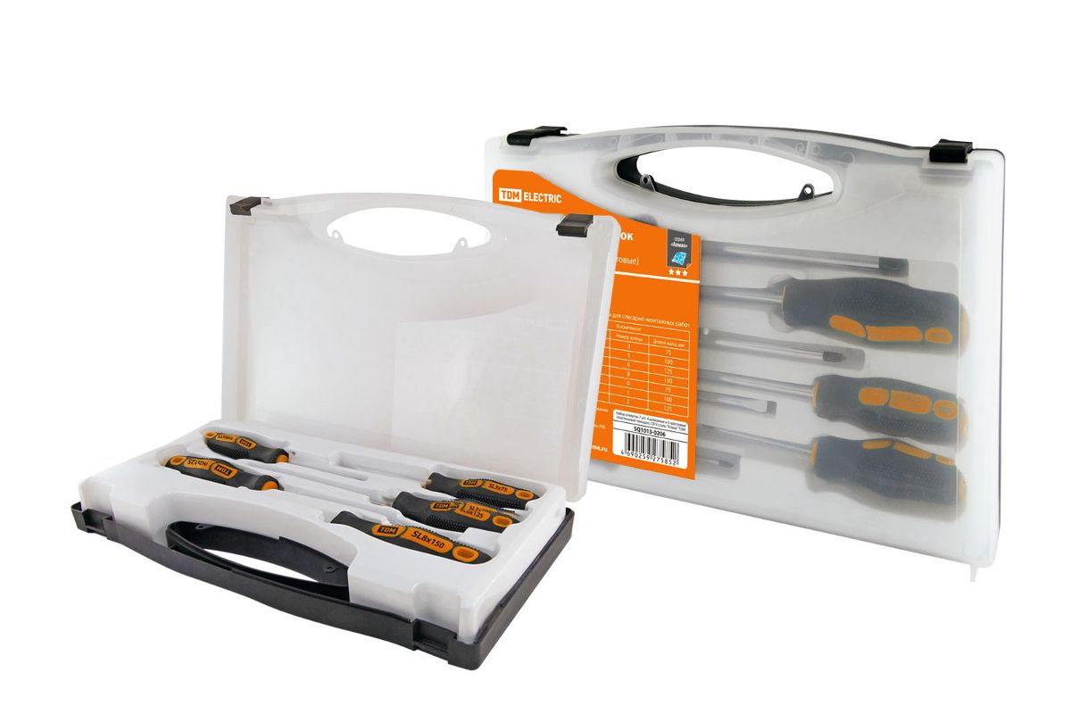 Набор отверток ТДМ SQ1013-0202 4шт. SL3x75, SL5х100, PH1х75, PH2х100 пласт. чемодан CrV Алмаз