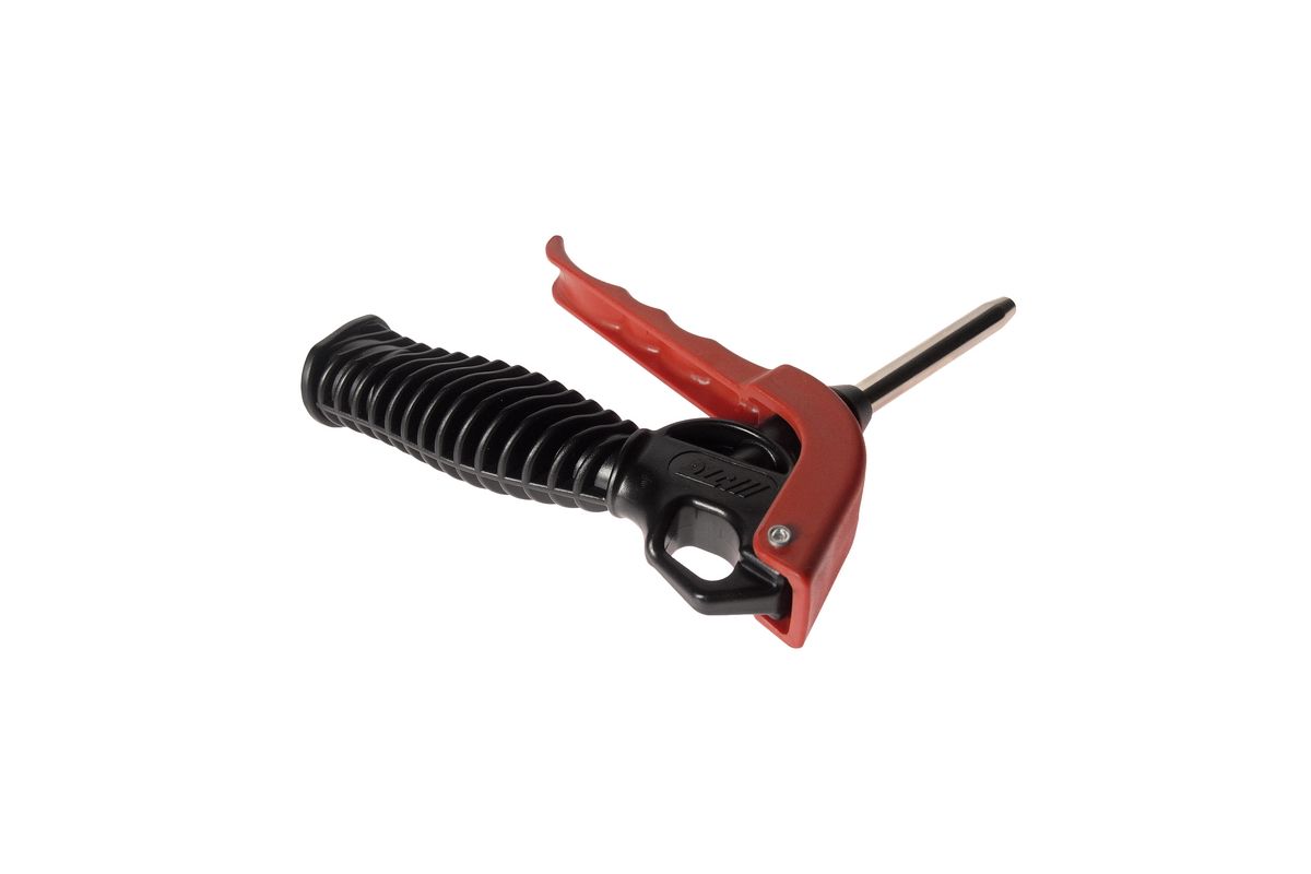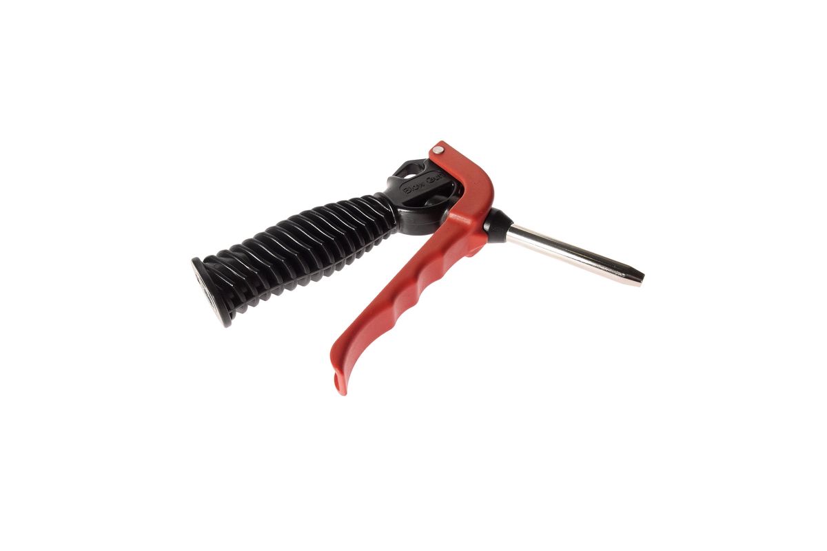 С эргономичной выжимной рукояткой для экономии усилия и металлическим переходником в месте подключения воздушного штуцера.