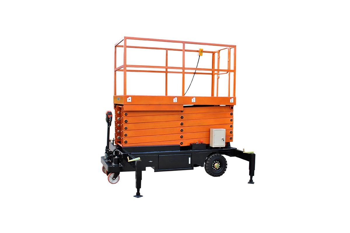 Перемещать подъемник возможно только в сложенном состоянии с собранными выносными опорами (аутригерами). Управление движением осуществляется с помощью центрального ведущего колеса по принципу сопровождаемого самоходного штабелера. Подъемники данной серии комплектуются двумя аккумуляторными батареями ёмкостью 150 Ач каждая, которые обеспечивают продолжительную автономную работу. При необходимости подъемник можно остановить и спустить до сложенного состояния с помощью кнопок экстренной остановки и ручного устройства стравливания давления.